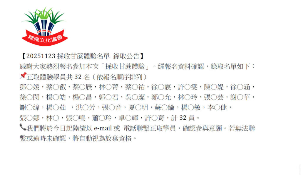 2025/11/23甘蔗體驗報名
